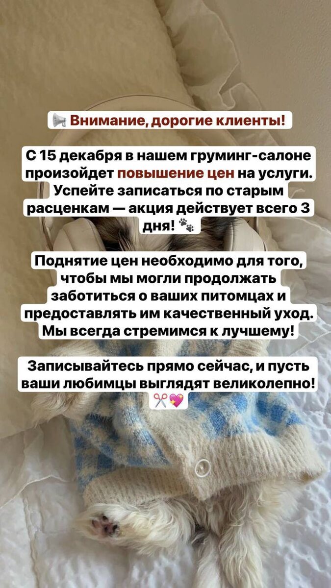 Успей записаться по старой цене!🥰 Сеть груминг салонов по уходу за питомцами🥰 📞8(843)2-400-420 📞 +7904762-54-05 Ибрагимова 24 📞 +7904762-65-52 Фучика145, Павлова 13 Telegram: @tsatsagroom_kazan @TsatsagroomKzn Наши адреса: Фучика 145, Ибрагимова 24, Павлова 13 ⏰работаем ежедневно по записи #зоосалон #груминг #питомцы #цацагрум