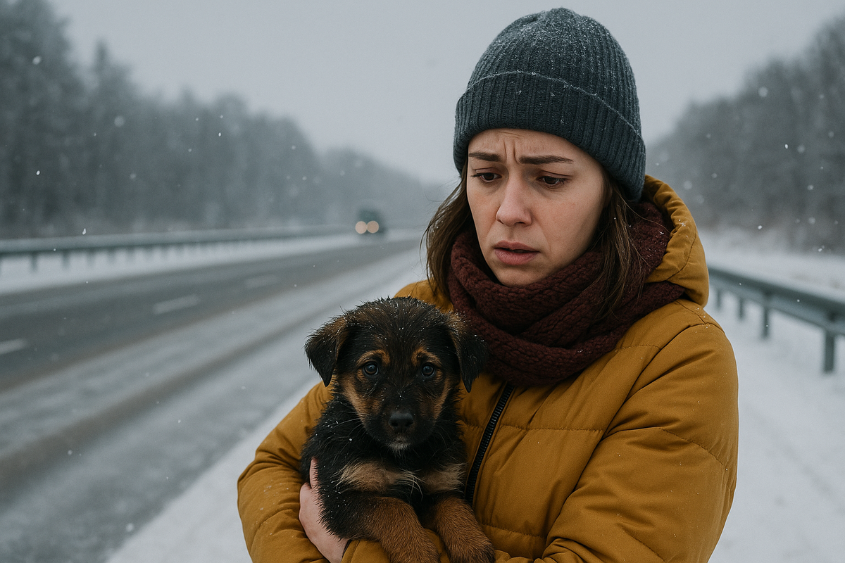 А вы бы как поступили? Остановились бы на трассе ради промокшего щенка — или поехали бы дальше, чтобы не ссориться с тем, кто за рулём вашей судьбы?