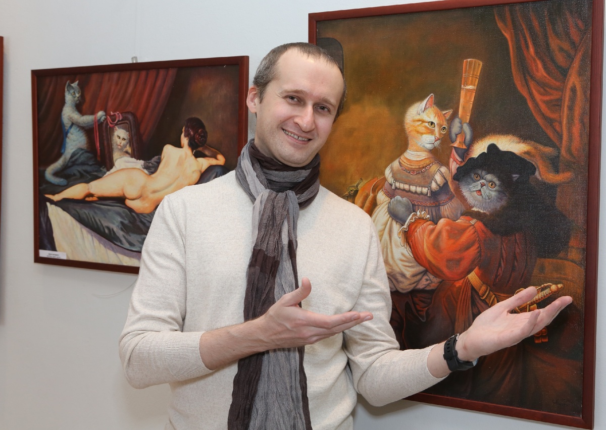 Я на своей персональной выставке с проектом «Люди-кошки».