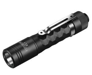 Авиационный алюминий, из которого выполнен корпус, обеспечивает отличное соотношение прочности и веса. При массе всего 23 грамма без батареи фонарь ощущается практически невесомым. Он не тянет карман, не мешает в рюкзаке и не добавляет лишнего веса экипировке. При этом алюминий обеспечивает высокую устойчивость к ударам, падениям и царапинам. Даже после длительной эксплуатации фонарь сохраняет презентабельный вид, что редко встречается у компактных моделей, активно используемых на улице. Миниатюрные размеры 91 на 18,5 мм позволяют спрятать EL1 даже в маленький карман, а его округлая форма исключает дискомфорт при ношении.