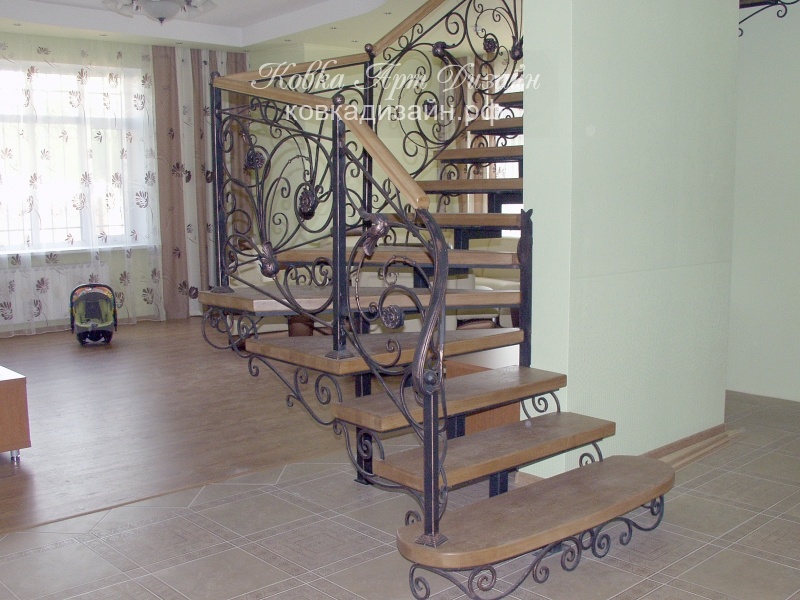 Забежные ступени, в отличие от традиционных прямых, имеют форму трапеции или треугольника, расширяясь с одной стороны и сужаясь с другой. Это позволяет плавно менять направление лестничного марша без использования промежуточных площадок. Кованые лестницы с такими ступенями становятся элегантным решением для ряда сложных архитектурных задач. Перечислим основные из них. Оптимизация пространства в условиях ограниченной площади Забежные ступени становятся настоящим спасением в тех случаях, когда необходимо установить лестницу в небольшом помещении. Классический марш занимает достаточно большую площадь, особенно если требуется соблюдение удобного угла подъема. Забежные ступени, напротив, позволяют повернуть лестницу, высвободив ценные квадратные метры. Это особенно актуально для двухуровневых квартир, таунхаусов и небольших загородных домов, где каждый сантиметр на счету. Обход препятствий Лестницы с забежными ступенями идеально подходят для тех случаев, когда необходимо обойти несущую с