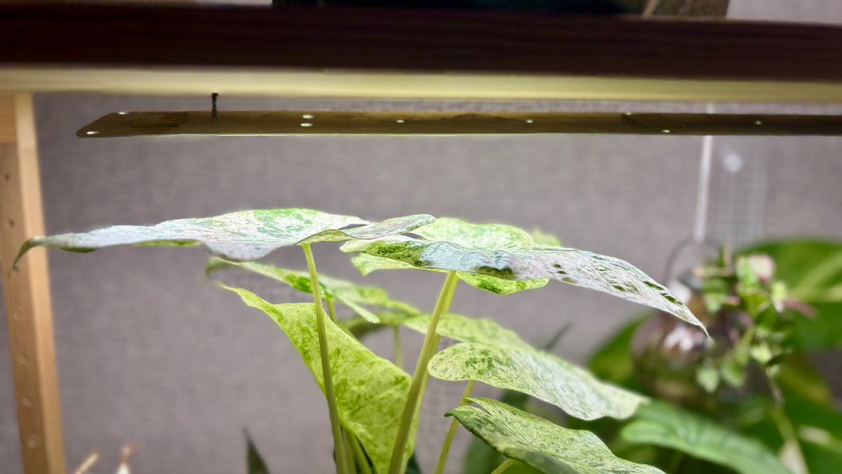 Мои растения решили, что пора расти вверх с удвоенной силой. Несколько недель я смотрела на стеллаж и понимала: ещё чуть-чуть — и листья упрутся в лампы. Особенно доставалось алоказии Одора Батик и антуриумам — они уже откровенно не помещались. Пришлось действовать. Идея была простая: самая верхняя полка занята только закрытыми тепличками с клубнями и черенками. Подняли её — и вторая полка сверху получила драгоценные сантиметры. Муж с отвёрткой, я с линейкой — и через 15 минут всё готово. Теперь расстояние от листьев до ламп — 12–15 см вместо прежних 3–5 см. Было Стало Почему опасно, когда листья слишком близко к лампе Старая формула «ватты = сантиметры» пошла ещё с 2010-х годов, когда цветоводы на форумах делились опытом с первыми LED-лампами. Тогда ватты примерно соответствовали световому потоку и теплу, поэтому и говорили: «лампа 40 Вт — держи 40 см, 60 Вт — 60 см». Это было простое правило для новичков. Сейчас оно устарело по трём причинам: Современные LED дают больше света при