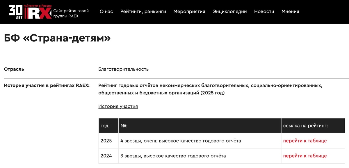 Наисвежайшие новости, которые радуют! Мы с вами снова на высоте. На этот раз уже по версии рейтингового агентства RAEX, а это, на минуточку - сегодня ведущее рейтинговое агентство в России не только по НКО, но и по бизнесу и госструктурам. Так вот - по сравнению с предыдущим годом мы существенно приросли и перешли из категории "три звезды" в категорию "четыре звезды". Приятно! Благодарим за высокую оценку, но как смеются сейчас коллеги - "как хороший коньяк стремимся к Пяти звездам"))) (это высшая категория не только в коньяке, как оказалось) Благодарим всех за поддержку - это вы благотворители, а мы просто организовываем процесс помощи. Теперь на уровне 4 звезд!