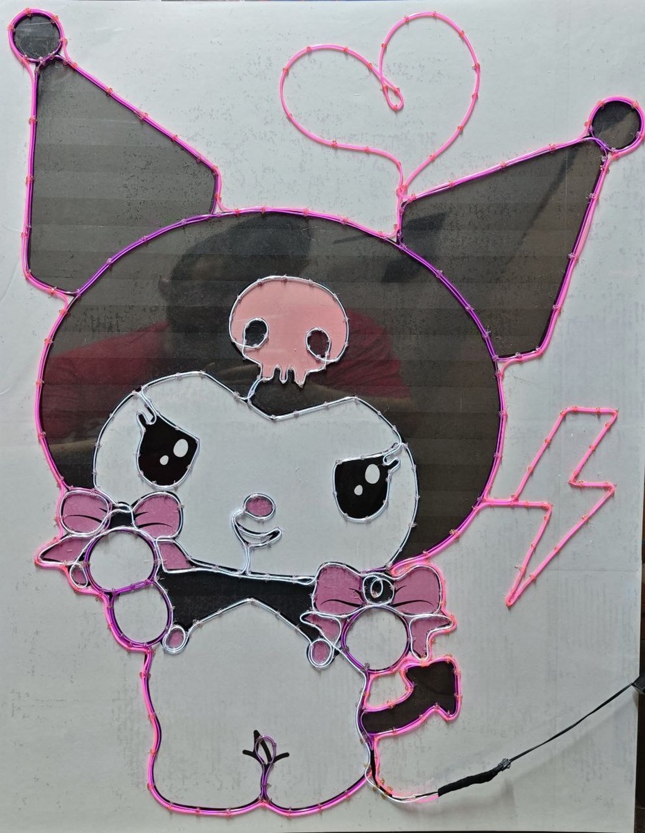 В ответ на пост Так получилась итоговая картинка, довёл ещё несколько нитей неоновых, т.к. одной мало, а для двух инвертор неона мощный, он рассчитан на 15 метров. Импровизированные сердце и молния, сделал для того чтобы потратить в дело оставшиеся метр-полтора нити, считаю для кастомной декоративной инсталляции получилось круто! Стоит не то чтобы копейки, но если такое покупать на заказ, то это цена конь, если брать из того что есть, то это инсталляции размеров раза в 2 меньше и стоимостью 3-6 тысяч рублей. Другой вопрос, что времени я на это убил конечно не мало, но справедливости ради могу сказать у меня первый такой опыт и это было интересно. Теперь по финансам: 🔺 Лист акрила толщиной 2мм ~ 1500₽; ⭕️ Неоновая нить 15 метров ~ 600₽; ✖️ Инвертор для неона ~ 500₽; 🟪 Ламинирующая плёнка для бумаги ~ 300₽; 🔺 Печать А0 или лепить из кусков или рисовать, не могу в деньгах оценить, но в целом есть варианты за почти бесплатно; ⭕️ Какой-нибудь блок питания на 12В ~ 200₽; ✖️ Ваше время - б