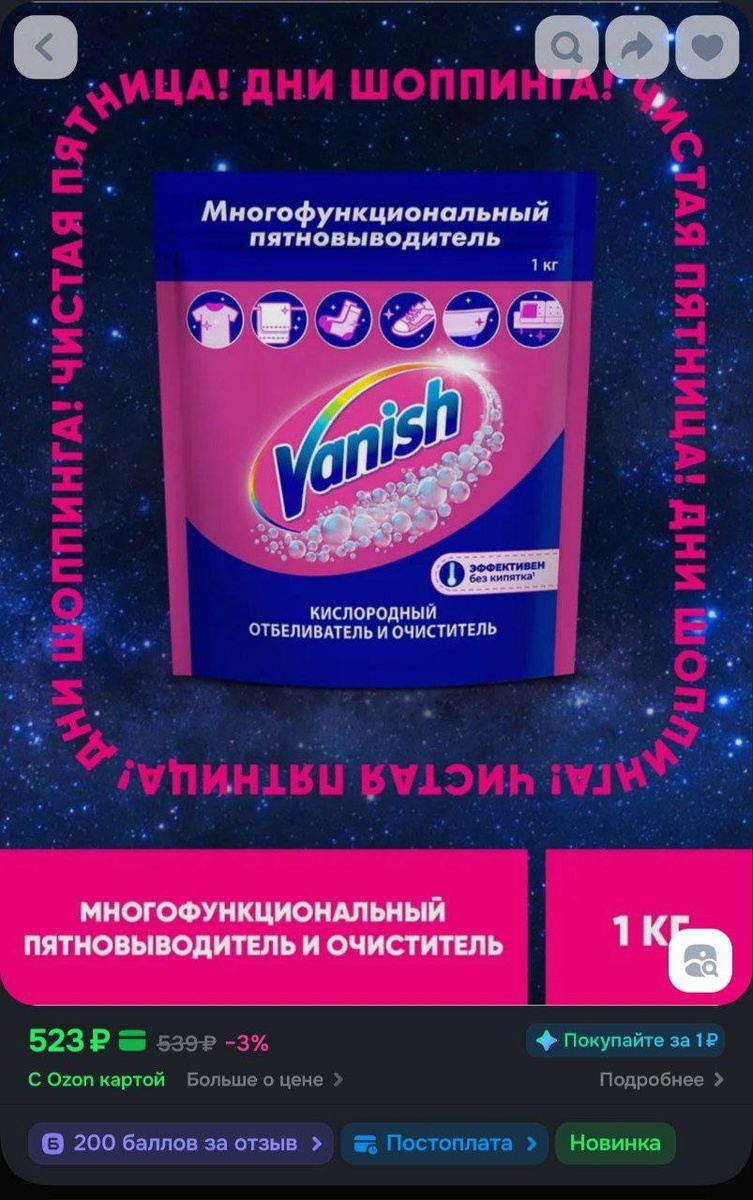 Кислородное многофункциональное порошкообразное средство «Vanish», 1000 г ➕ 200 баллов за отзыв https://ozon.ru/t/Vp1mn65 Матрас анатомический Askona (Аскона) Gravity Millennium 160x200 см за 10180₽ https://market.yandex.ru/cc/8CuZou