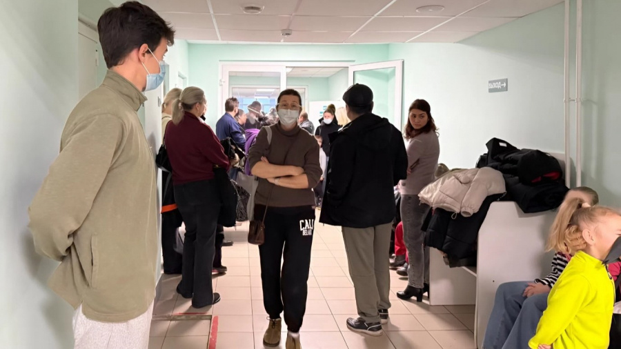 На фото — толпа в детской поликлинике. Картина, что называется, маслом — в городе резко выросла заболеваемость ОРВИ. 29 классов в школах города перевели на дистант. Кружки и секции поредели наполовину. В ДШИ отменили концерты. И так далее по списку.