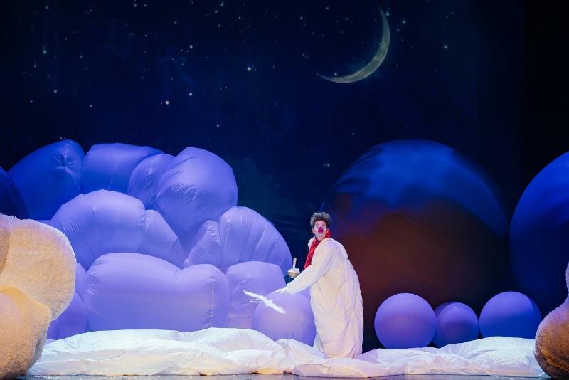 Сказочные персонажи помогут зрителям побывать в облаках, на волшебном карнавале и в цирке. В постановке используются спецэффекты, а желающие смогут сами выйти на сцену и стать частью представления.
