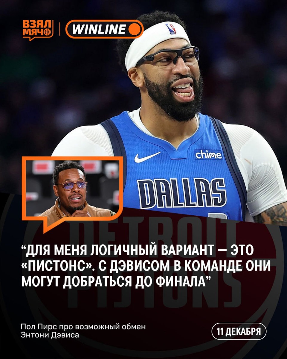 😳 А что, если Энтони Дэвис перейдёт в «Детройт»? 🗣 «Для меня самый логичный вариант — это „Детройт“. Что касается „Атланты“, я бы дал ей время на рост и не трогал бы их молодых игроков. „Торонто“ мне тоже импонирует, если только не считать, что приход Дэвиса сразу поднимет их на другой уровень. А вот „Пистонс“ с Дэвисом вполне могут добраться до финала. По „Хокс“ и „Рэпторс“ у меня есть сомнения. Дэвис — игрок, который нужен командам, желающим выигрывать прямо сейчас. Это не тот, под кого закладывают долгосрочный фундамент. С ним окно возможностей — 2–3 года». Даже пройдут любимый «Бостон» Пирса? 😂 🏀 ПОДПИШИСЬ — ЗДЕСЬ ЖИВЁТ БАСКЕТБОЛ!