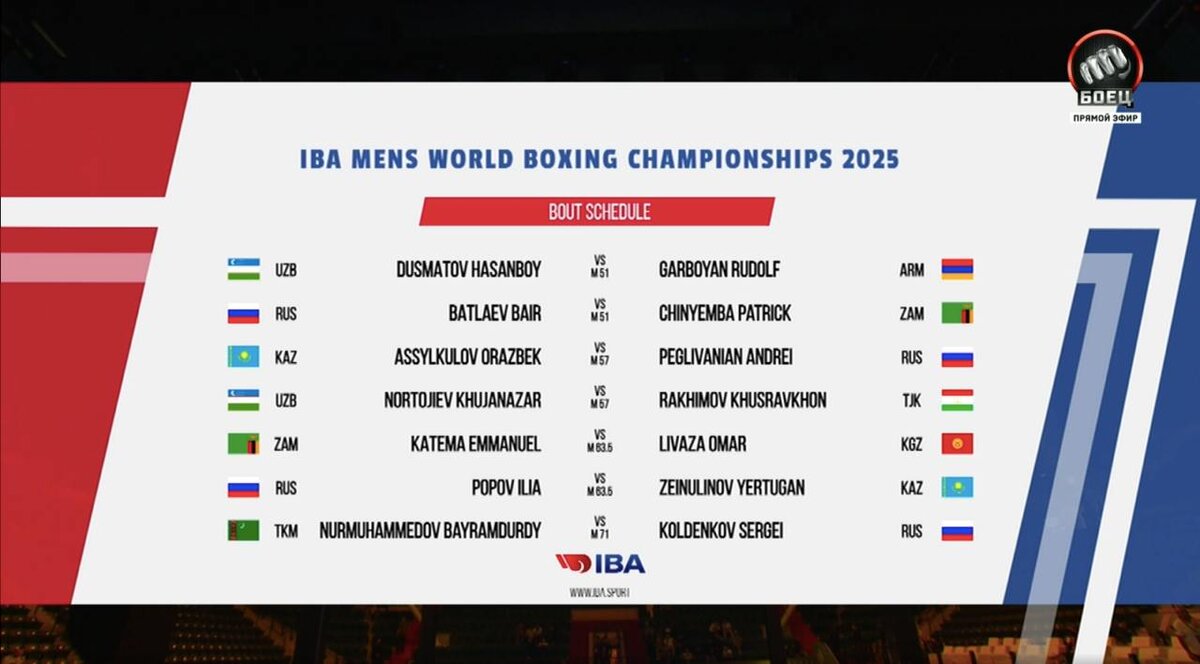 Приступаем к вечерней сессии ЧМ по боксу 🥊 Впереди семь поединков с участием наших спортсменов: Баир Батлаев, Андрей Пегливанян, Илья Попов, Сергей Колденков, Джамбулат Бижамов, Муслим Гаджимагомедов, Давид Суров 🇷🇺 Смотрим на Матч! Боец и Матч ТВ и топим за наших боксеров 💪 Ссылка на трансляцию: https://matchtv.ru/on-air ❗️ ПОСТ ОБНОВЛЕН: 1️⃣2️⃣/1️⃣3️⃣ ✅ Батлаев отправляется в финал; 🥉 Пегливанян становится бронзовым призером; ✅ Попов поборется за золото; ✅ Колденков выходит в финальную стадию; ✅ Бижамов – в финале; ✅ Гаджимагомедов уверенно проходит в финал; ✅ Суров забирает путевку в финал!