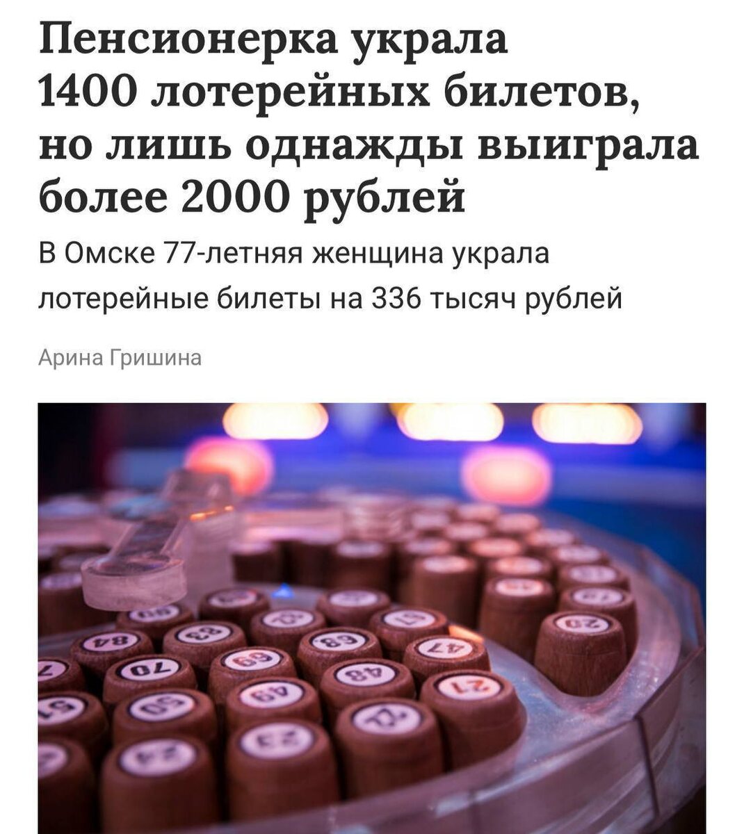 77-летняя пенсионерка из Омска украла 1400 лотерейных билетов, но максимальный выигрыш составил всего 2 тысячи рублей