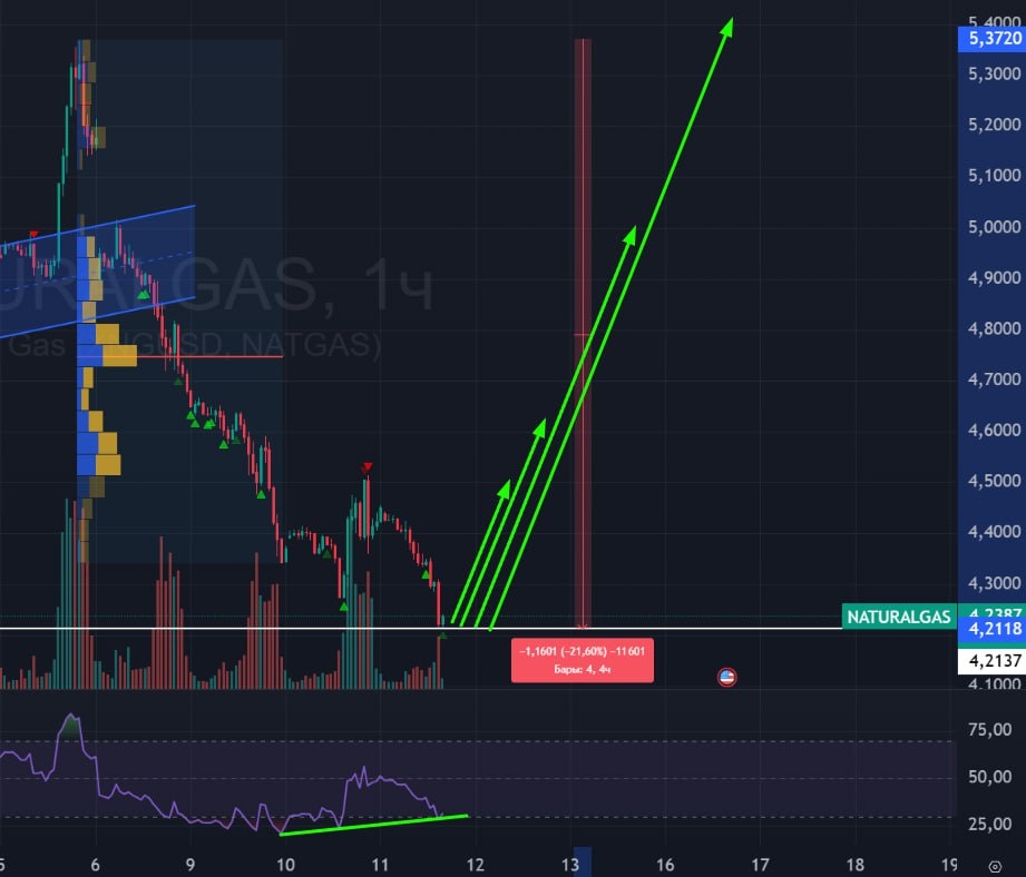В ответ на пост ⛽️ ГАЗ 🟢 Вчера я забрал отскок в газе, сейчас в режиме ждуна, жду сетап на отскок. Так же вчера предполагал (тут), как могут развиваться события в газе, пока что идем понижнему сценарию - пришли на поддержку. 🟢 Данная поддержка сильная, не думаю что ее будем легко проходить. А так же не забываем, что газ обычно после трендовых полетов на 20% останавливается в своей агонии, т.к. на этом этапе ломаются котлетчики. 🚗 Жду отскок, жду сетап на вход, жду запасы газа. Я до сих пор не исключаю и перехай прошлой пятницы, потом что это газ, тут возможно ВСЁ. #Газ #NG1 #американскийгаз #Фьючерсгаза #naturalgas #bogdanoffinvest