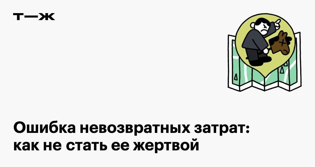 🟢 Есть «через не могу» пищу, которая не нравится или вызывает физический дискомфорт, из-за того, что на нее потрачены деньги, время и силы. 🟢 Читать книгу или смотреть фильм, которые не нравятся или вызывают скуку, но за которые было заплачено. 🟢 Заниматься хобби, к которому не лежит душа, зато уже куплены расходные материалы. Возможно, вы узнали себя в этих действиях. Это примеры ошибки невозратных трат — когнитивного искажения, которое мешает бросить бесперспективное дело потому, что на него уже были потрачены ресурсы и силы. Почему мы так себя ведем, как вовремя распознать и избежать подобных ошибок, объясняем здесь: https://t-j.ru/m-tg/sunk-cost-fallacy/