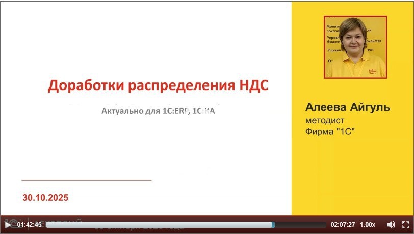 ‼️Про доработки учета и распределения НДС по основным средствам в программах 1С:ERP, 1С:КА, 1С:УТ рассказала Айгуль Алеева, эксперт 1С в лекции на тему Новое в программах 1С:ERP и 1С:КА версии 2.5.25 и 1С:УТ версии 11.5.25 ❗️Дополнительно доступна презентация лектора 👉Смотрите бесплатно полную видеозапись лекции 🚨Подписывайтесь на @lector_1c