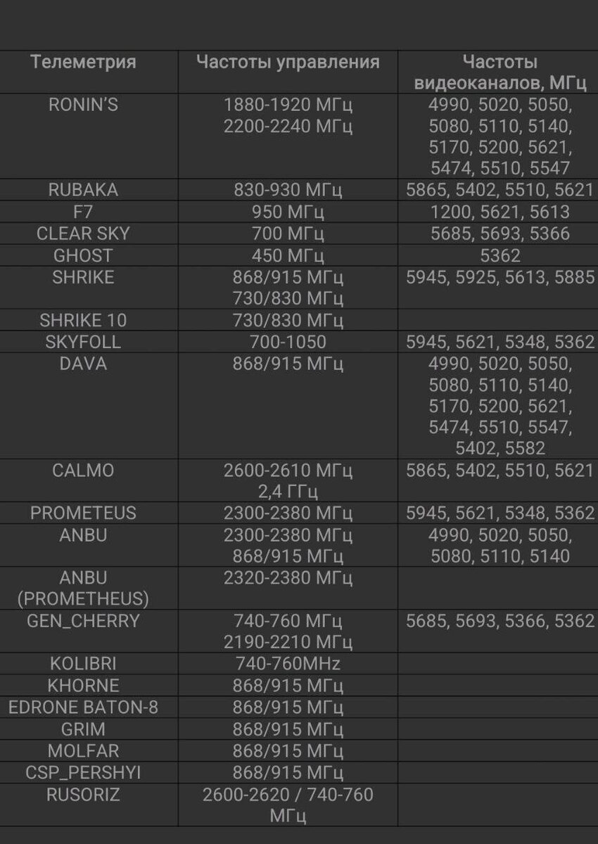 Российские дроноводы опубликовали сводную таблицу с частотами, на которых летали дроны противника в октябре и ноябре на запорожском направлении. #полезное