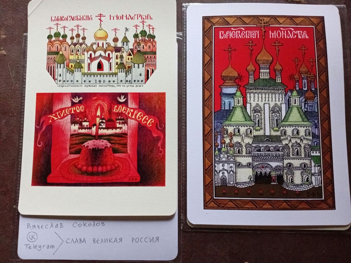 Открытки моего соседа художника Вячеслава Соколова,с изображением Борисоглебского монастыря,в таком вот интересном стиле,раздаю вместе со