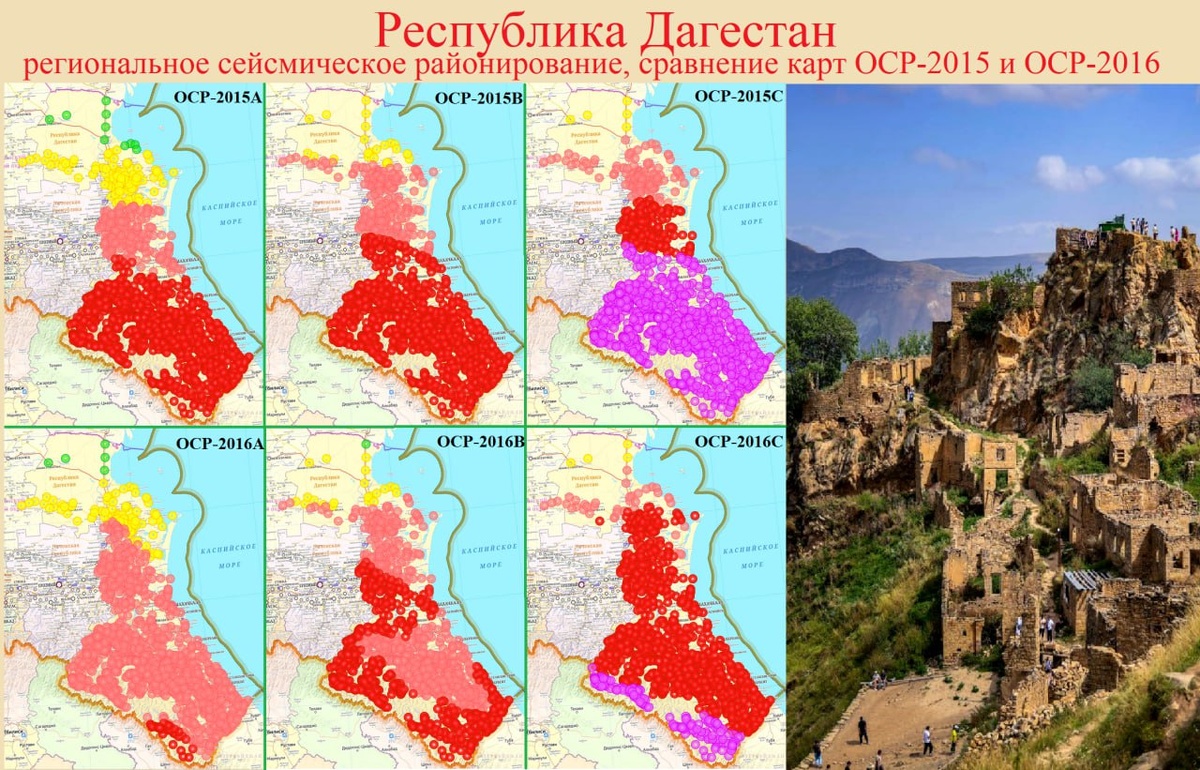 Республика Дагестан, региональное сейсмическое районирование, сравнение карт ОСР-2015 и ОСР-2016