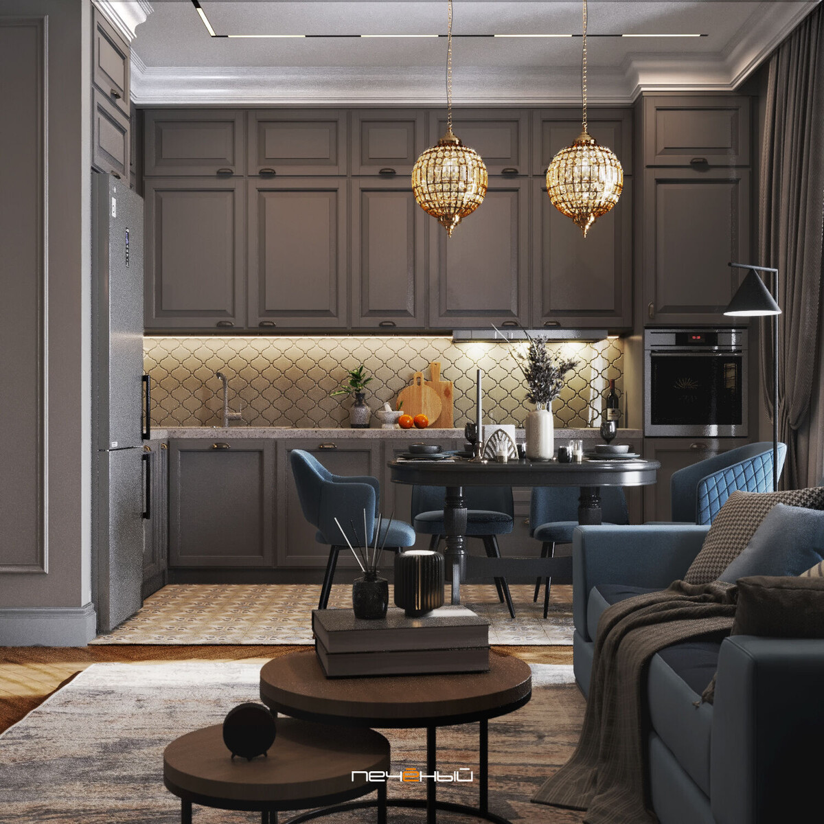 Дизайн кухни-гостиной в стиле неоклассика: уют и элегантность