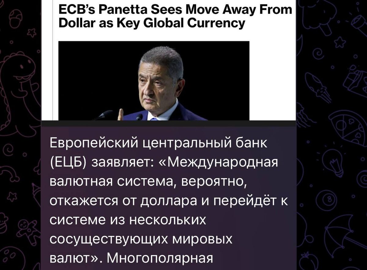 Мир уходит от доллара. И это не заголовок — это сдвиг эпохи Сегодня в ленте проскочила важная новость, которую большинство пролистывает как фон: представитель ЕЦБ Панетта заявил, что мировая финансовая система вероятно откажется от доллара как единственной ключевой валюты и перейдёт к модели нескольких со-существующих резервных валют. Если говорить проще: однополярный денежный мир заканчивается. И это не теория — это то, что элиты начинают проговаривать вслух. И вот что здесь интересно. Когда большие системы меняют архитектуру, это происходит не одномоментно. Это не «завтра доллар упадёт». Это длительный процесс перегруппировки: как будто на шахматной доске фигуры начали занимать новые позиции перед новой партией. Мы это уже проходили в серии постов про глобальную перезагрузку — цепочка от 2008 года до сегодняшнего дня складывается слишком логично. Но давай посмотрим, что это значит для инвестора. Первое — возрастает волатильность долговых рынков. Когда доверие к одной валюте пер