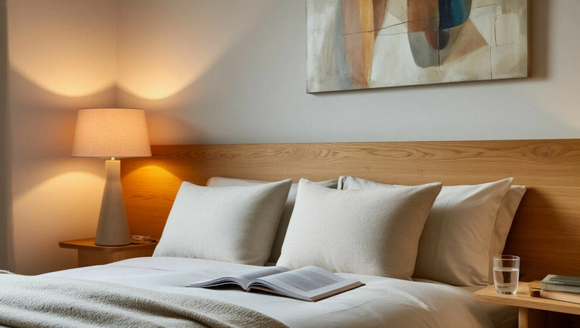 Пространство у изголовья должно быть максимально чистым и простым. Оставьте только одну книгу для чтения, лампу, может быть, стакан воды. Все остальное — рабочие бумаги, ноутбук, коробки с вещами — уберите в другое место. Порядок на поверхности помогает навести порядок в мыслях.