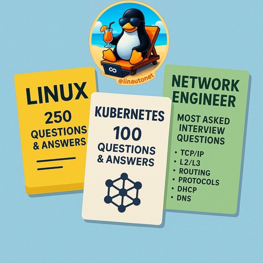 Нашёл три полезных документа, которые могут сильно упростить жизнь тем, кто готовится к техсобеседованиям — или сам их проводит. 🤟Linux Scenario Based Interview – 250 Questions & Answers Отличная штука для тех, кто хочет проверить себя на практических сценариях. Матёрые админы могут пройти мимо, а вот всем остальным — прям хороший набор для тренировки боевого мышления и повторения ключевых тем. 👾 Kubernetes – 100 Questions & Answers Документ специфичный и без структуры, но это как раз тот случай, когда «открыл → нашёл нужный вопрос → вспомнил/разобрался → пошёл дальше». На глубокое понимание K8s он не претендует, зато в роли справочника перед собесом работает отлично. 🖥 Network Engineer – Most Asked Interview Questions Пригодится и соискателям, и нанимающим инженеров. По сути — мини-энциклопедия по основам и не только: TCP/IP, L2/L3, routing protocols, DHCP, DNS, security и пр. Очень удобно, когда нужно быстро освежить базу. Linux | Network | DevOps Чат YouTube VK Rutube