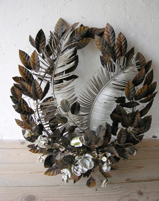 С развитием технологий появились искусственные цветы. В начале прошлого века пластик ещё не был известен, но мастера уже активно работали с металлом. Создавались венки из: серебра; бронзы; позже — лёгкого и доступного алюминия. Часто такие венки дополнялись фарфоровыми вставками. Подтверждение этому можно найти в вырезке из газеты «Русское слово» за 1910 год, а также в коллекции музея‑усадьбы Л. Н. Толстого «Ясная Поляна». Европейская мода В конце XIX — начале XX века фарфоровые венки были популярны и в Европе. Там встречались: