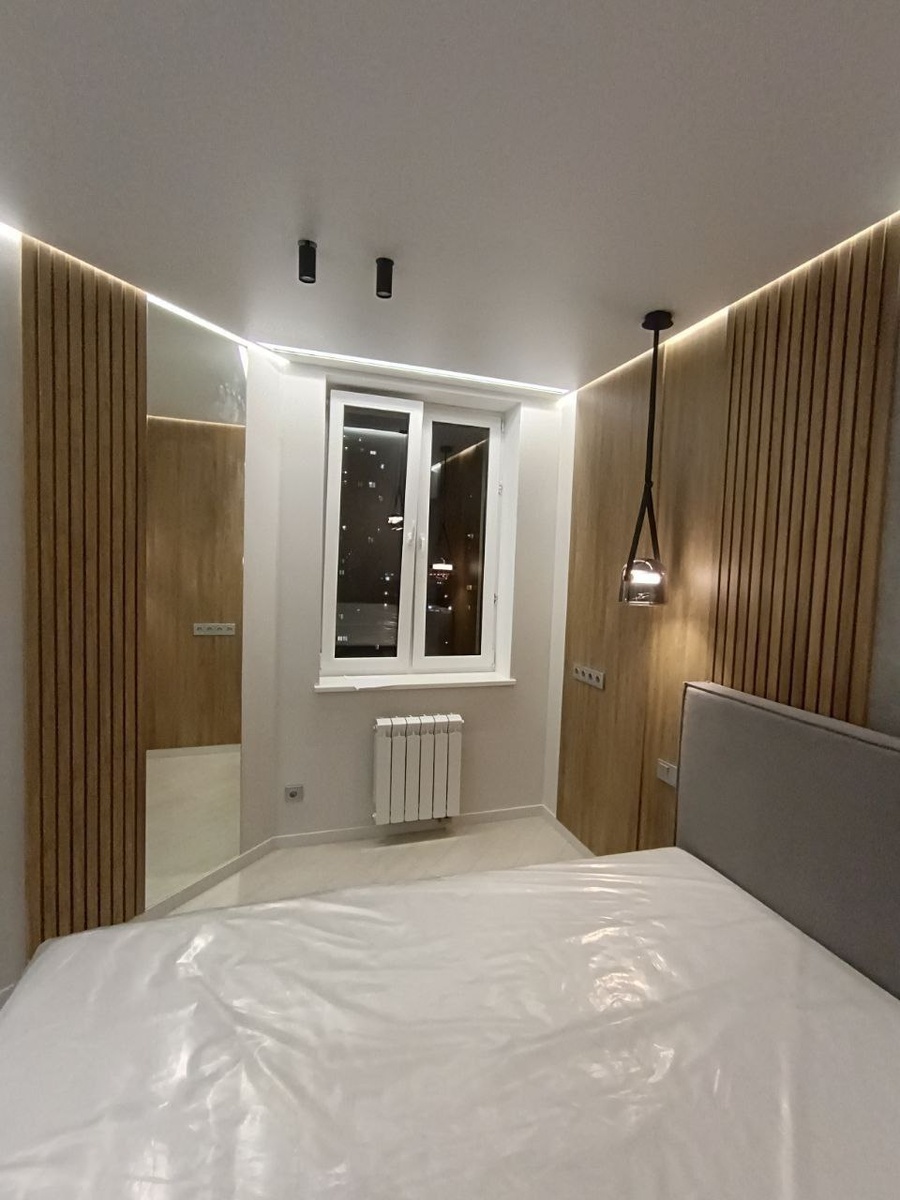 Решение 1. Сочетание гладких панелей, зеркал и декоративных реек Сочетание гладких панелей и декоративных реек в зоне за кроватью и реек с зеркалом напротив. Визуально удачный выбор, так как гладкие панели отражаются в зеркале и создают эффект таких же панелей на противоположной стене. Решение 2. Сочетание панелей гладки и фрезерованных с металлическими профилями. Стеновые панели из двух коллекций: гладкие Lattice и фрезерованные Art nuance в одной плоскости с алюминиевым чёрными профилями. Цвет изделий дуб флагстафф - отличается наличием серебристых вставок на покрытии. Цвет может быть любой из палитры 120+ покрытий. Деление и очередность расположения панелей так же индивидуально. Решение 3. Необычное исполнение реек на стене с точечными светильниками между реек вдоль пола и потолка. В этой работе еще интересно сочетание декоративной перегородки и декоративных реек в едином цвете в шпоне коллекции файн-лайн. Обратите внимание на интересную реализацию с рейками. Между ними сделаны