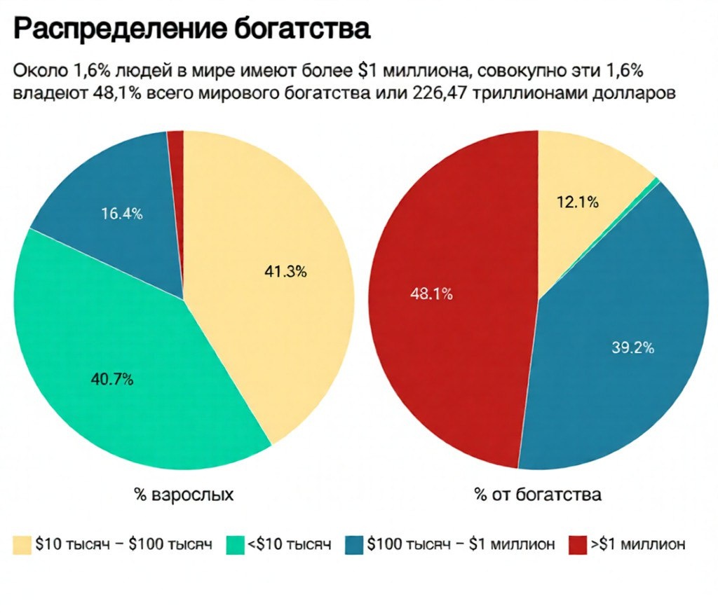 Π±ΠΎΠ³Π°ΡΡΡΠ² ΠΌΠΈΡΠ° ΠΏΡΠΈΠ½Π°Π΄Π»Π΅ΠΆΠΈΡ 1,6% Π½Π°ΡΠ΅Π»Π΅Π½ΠΈΡ. Π‘Π²Π΅ΠΆΠΈΠ΅ Π΄Π°Π½Π½ΡΠ΅ UBS ΠΏΠΎΠΊΠ°Π·ΡΠ²Π°ΡΡ: Π²ΡΠ΅Π³ΠΎ 60 ΠΌΠΈΠ»Π»ΠΈΠΎΠ½ΠΎΠ² ΡΠ΅Π»ΠΎΠ²Π΅ΠΊ Π²Π»Π°Π΄Π΅ΡΡ 48,1% Π³Π»ΠΎΠ±Π°Π»ΡΠ½ΡΡ