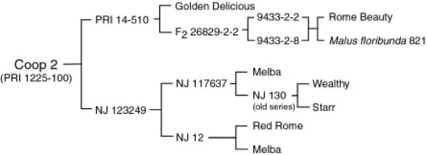 Патент. (PRI 1225-100 = PRI 14-510 x NJ 123249) Представлен как «Prima» (Dayton et al. 1970) Патент США на растение № Reissue 28435, 1975) Родословная сорта Справка. Яблоня сорта 'Прима' — результат скрещивания гибридных форм '14–510' и 'NY123249'. Получена в США в 1970 году. Принята на государственное испытание в 1977 году. Сорт включен в государственный реестр в 1996 году по Северо-Кавказскому региону (Краснодарский край и Республика Адыгея) Размеры и форма роста: Деревья сильнорослые. Крона высокоовальная, с возрастом округлая, довольно густая. Цветы и плоды: У представителей сорта 'Прима' плоды средней величины, массой 139 г., округлой формы, часто асимметричные, гладкие, иногда слабо ребристые. Воронка относительно широкая или узкая, глубокая, в глубине немного оржавленная. Блюдце средней глубины или глубокое, относительно широкое, ребристое и бугристое, бороздчатое. Плодоножка не сильно длинная или короткая, средней толщины. Кожица с восковым налетом. Окраска бледно-желтая ил