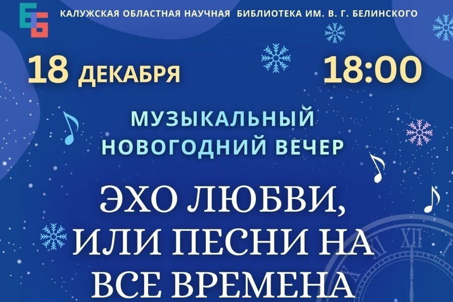 Сообщение «Эхо любви, или Песни на все времена»: в библиотеке им. Белинского прозвучат мелодии, которые мы ждём весь год появились сначала на Творческая Калуга.
