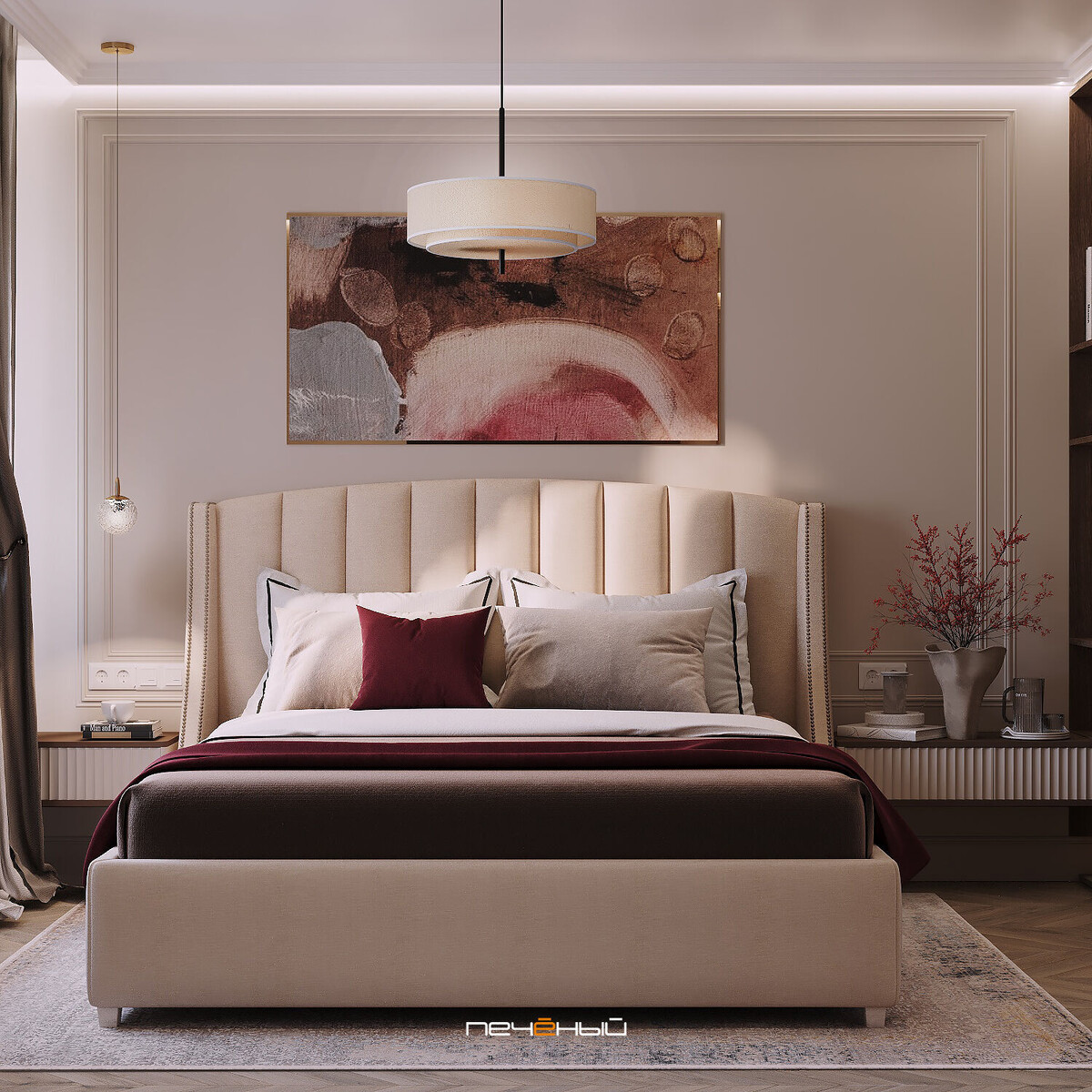 Спальня — это место, где мы отдыхаем, восстанавливаем силы и настраиваемся на новый день. Я всегда говорю нашим клиентам: важно создать пространство, где сочетание элегантности классики и лёгкости современного стиля не просто красиво, но и удобно для жизни. Основы дизайна спальни в стиле неоклассика Неоклассика в спальне — это спокойные линии, натуральные материалы и гармоничная цветовая гамма. Мы начинаем с нейтральной базы: светлые стены, лаконичная мебель и текстиль с мягкой фактурой. • Акценты через молдинги, декоративные панели и картины; • Мягкие текстуры и натуральные материалы создают уют; • Симметрия и пропорции помогают расставить мебель гармонично. Планировка и функциональные зоны Хорошая планировка делает спальню удобной и просторной. Мы продумываем расположение кровати, шкафов и зоны отдыха так, чтобы всё было логично и комфортно. 1. Кровать ставим так, чтобы пространство казалось свободным; 2. Ночные тумбы и шкафы размещаем для удобного доступа; 3. Организуем хранение