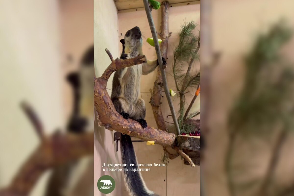 В Ленинградском зоопарке появился новый и необычный питомец – двухцветная гигантская белка. Самку по кличке Рикки-Тикки, которой скоро исполнится 8 месяцев, передал нижегородский зоопарк «Лимпопо». Этот вид является одним из самых крупных среди белок в мире. Рикки-Тикки уже достигла размеров взрослой особи: ее вес составляет 1 килограмм 380 граммов, что примерно в пять раз больше веса обычной белки. Длина ее тела около 37 сантиметров, а пушистого хвоста целых 42 сантиметра. С сентября животное находилось на карантине, проходило ветеринарное обследование и привыкало к новому дому. Теперь белка поселилась в павильоне «Тропический дом». В природе эти грызуны обитают в тропических лесах Юго-Восточной Азии. Зоопарк приглашает посетителей познакомиться с новым обитателем, прося при этом не шуметь возле ее вольера, чтобы не тревожить животное в период адаптации. Ранее мы писали о том, как обитатели Ленинградского зоопарка готовятся к зиме.