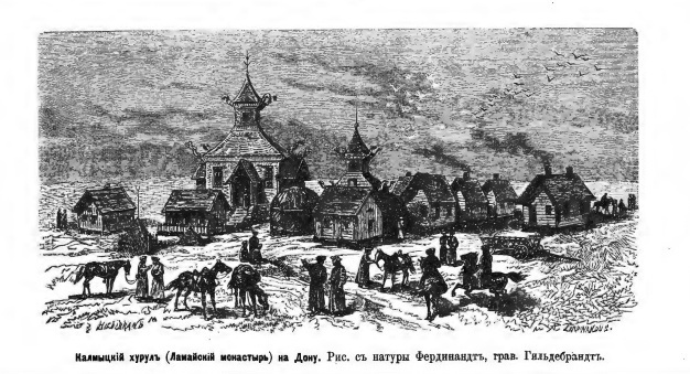 На левом берегу Волги степь принадлежит калмыкам. Интересно описание, которое художник Мойне[1] сделал по случаю визита к князю Тюменю об их жизни и деятельности.