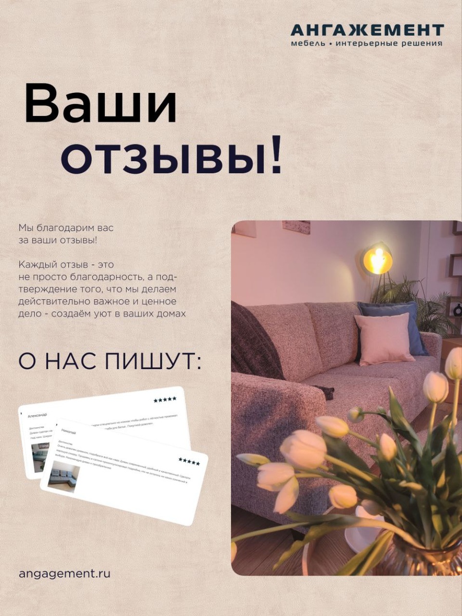 Мы всегда рады получать ваши отзывы! 🌟Сегодня хотим поделиться с вами отзывами на диван Sydney P.S. На него сейчас действует скидка 🤫 ➡️Подробнее 📍Адреса магазинов на сайте angagement.ru 📲 Консультация: 8(800)333-50-56 ✅ Подписывайтесь на наши каналы: https://clck.ru/3AGPWT #диваныкраснодар #мебельныйсалон #магазинмебели #диваны #ангажемент #мягкаямебель