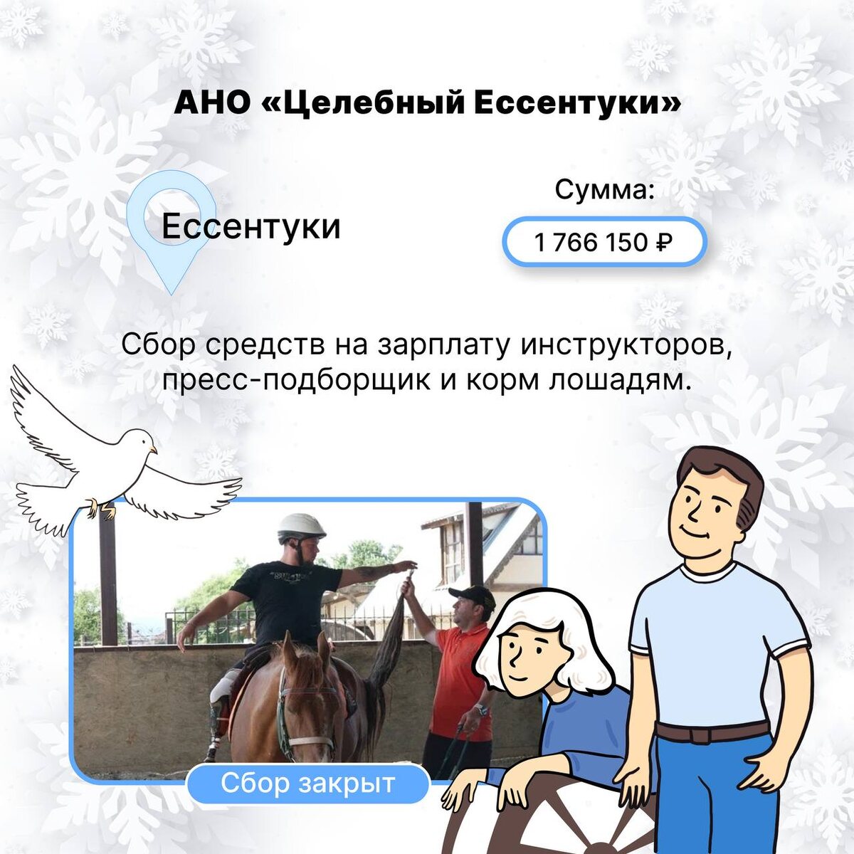 🎆 Дорогие друзья, от всего сердца благодарим каждого из вас, кто проявил деятельную веру и сострадание к людям, ждавшим руки помощи! 📍Ессентуки В народе говорят – у кого есть конь, у того есть крылья! Пятерым воспитанникам центра «Целебный Ессентуки» полностью сняли диагноз «аутизм» – это невероятный результат и он здорово мотивирует ветеранов: если дети смогли, то и они смогут! ✅ Центр продолжит бесплатную реабилитацию больных детей и ветеранов СВО с тяжелыми увечьями! 📍 Деревня Артемово Поворот на Артемово» – автобусная остановка, где нужно выйти, чтобы попасть в деревню. Для меня этот неприметный перекресток стал крутым поворотом в судьбе. Особая гордость в истории приюта – счастливые в судьбы. ✅ Мы с вами обеспечили питание трудников на протяжение месяца. 📍 Южно-Сахалинск Промыслительно удаленный от цивилизации «Остров спасения» – жизненно нуждался в собственном транспорте, чтобы подопечные могли ездить в город на учебу, к врачам и по логистическим нуждам реабилитацио