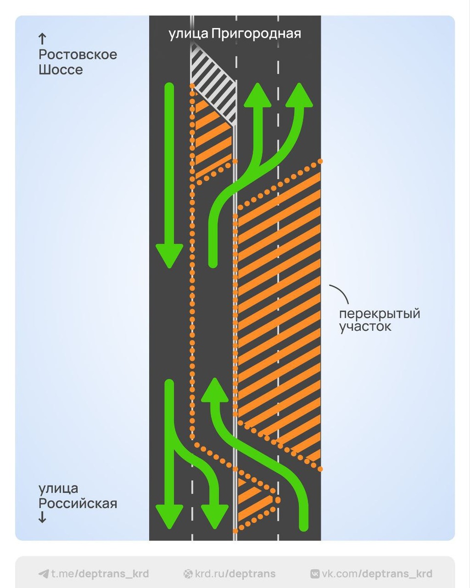С 12 декабря на участке улицы Пригородной ограничат движение по полосам. Это нужно для строительства сетей водопровода к новой поликлинике. Работы будут проходить методом горизонтального бурения. Если позволит погода, закончить работы планируется до конца текущего года. Для этого на участке улицы Пригородной ограничат движение по двум полосам в сторону Ростовского шоссе. Для организации проезда — движение в этом направлении сократят с двух до одной полосы и запустят через полосу встречного движения. Таким образом, на время работ для движения транспорта будет доступно по одной полосе для каждого направления. 💜 Мы в MAX 👍 ТК Краснодар | Подписаться