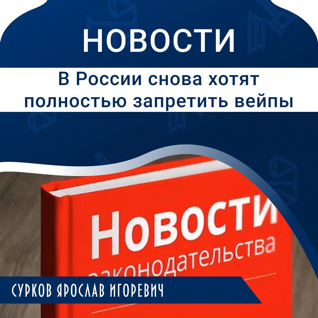 В России снова хотят полностью запретить вейпы В Госдуме предложили полностью запретить продажу и оборот вейпов, включая устройства и жидкости. Также планируется ужесточить ответственность за незаконную торговлю и вовлечение подростков в никотиновую продукцию. Инициатива передана в межфракционные рабочие группы. 🔎Авторы считают запрет необходимым для защиты детей и снижения никотиновой зависимости в стране. Ставьте реакции, чтобы постов на данную тему было больше! АДВОКАТ Сурков Ярослав Игоревич