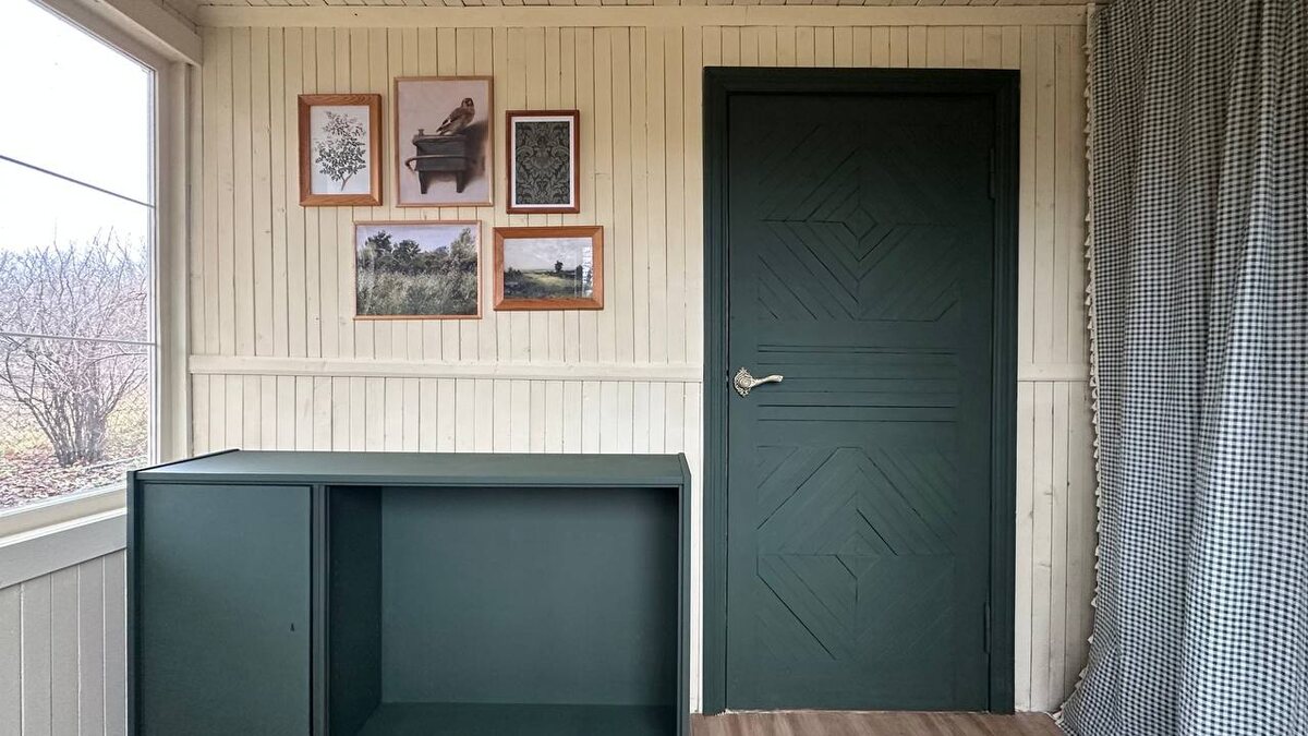 Всем привет!) всё перекрасили… теперь понимаю, что тумбу нужно делать другого цвета! Слишком много этого зелёного крупными цветовыми пятнами. Идеально, если бы тумба была в натуральном цвете дерева, но там были пятна, которые не убирались шлиф машиной. Плюс хочется добавить ещё цвета, чтобы сделать интерьер интереснее. Присмотрела красную охру) смело для меня, цвет акцентный, сложный…думаю… Как на ваш взгляд, какой цвет тут впишется?)