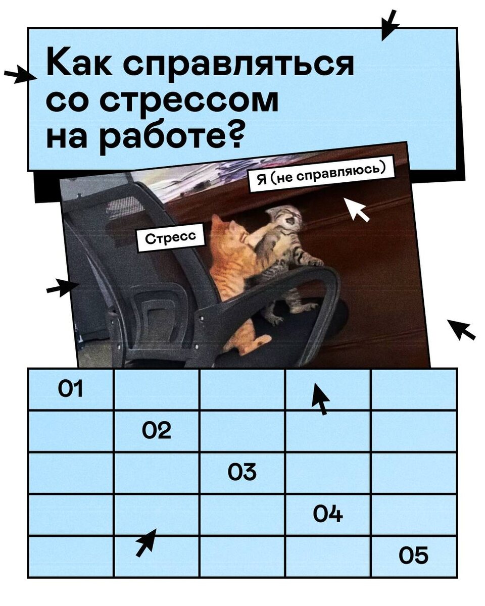 Поэтому для всех тех, кто уже превращается в жука-невовыжука, мы собрали памятку по борьбе с рабочим стрессом в карточках 😭