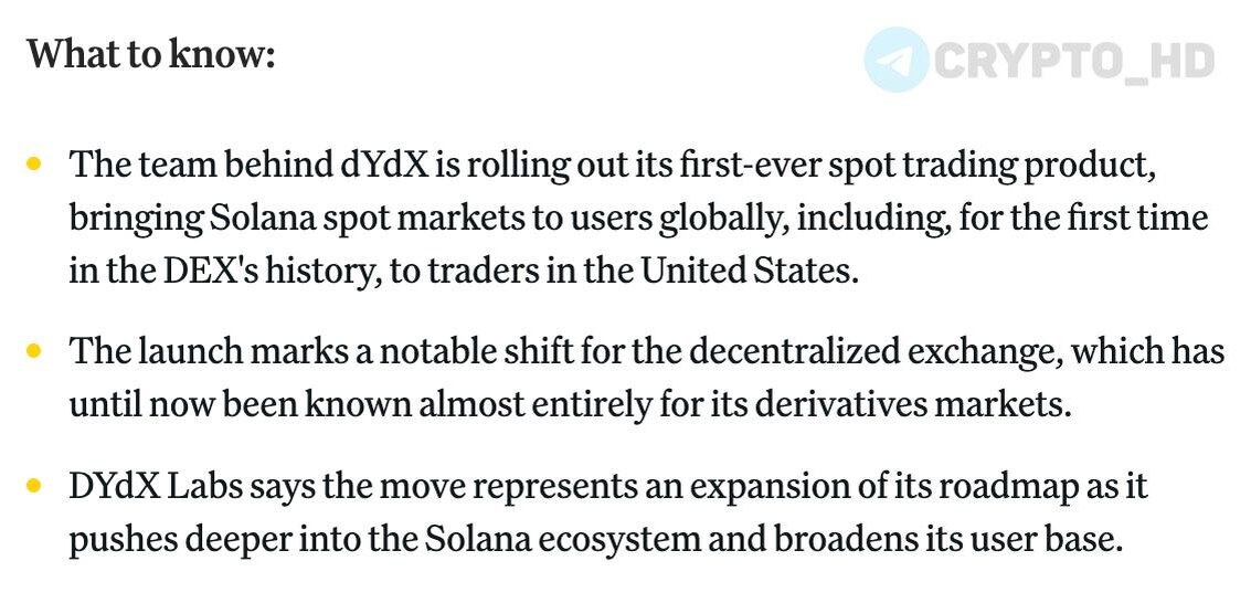 🍬 #DYDX Биржа dYdX запускает спотовую торговлю и открывается для США – анонс