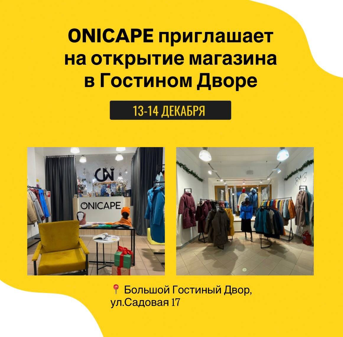 ОФИЦИАЛЬНОЕ ОТКРЫТИЕ ONICAPE в Гостином дворе 🎉 Что вас ждёт: - 🎁 сюрпризы первым 50 покупателям каждого дня - 💸 шанс выиграть 10 000 ₽ (розыгрыш по чекaм) - ✨ двойные бонусы за покупки - 🆕 знакомство с новинками Не упустите шанс — приходите в эти выходные в ONICAPE 😍 🗓️ 13-14 декабря 📍 Большой Гостиный Двор, ул.Садовая 17
