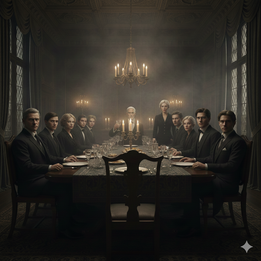 Серебряные приборы блестели при свечах, отражая высокие лепные потолки. В огромной столовой старинного дома стоял густой, тяжелый запах ладана и чего-то сладкого, приторного — запаха времени, застывшего в дереве.