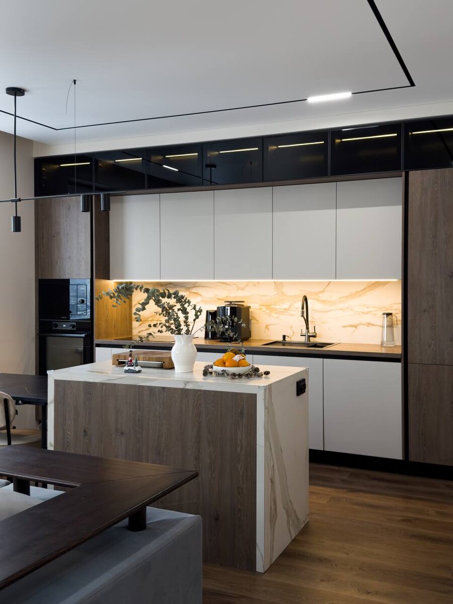 Как мы превратили сомнения об острове — в центр семейной вселенной. Сомнения перед островом — это нормально. Кажется, что он заберёт пространство, создаст тесноту, усложнит планировку. Анастасия думала так же, пока мы не показали ей, как остров не занимает место — он создаёт его. В центре кухни теперь не свободная площадь, а точка притяжения. С винным шкафом, который хранит не только бутылки, но и моменты для особых случаев. Но главная магия — в том, чего не видно: - Антресоли со стеклом и светом скрывают вытяжку так искусно, что технику принимают за дизайнерский элемент - Задняя панель снимается одним движением — инженерия не должна мешать эстетике - Каждый сантиметр острова работает: от столешницы для готовки до ящиков для сервировки Кухня созданная для жизни. Для тех дней, когда вся семья собирается на завтрак. Для тех вечеров, когда друзья стоят вокруг острова с бокалами. Для тех моментов, когда пространство становится больше, чем сумма его деталей. Напишите нам «ХОЧУ КУХНЮ» —