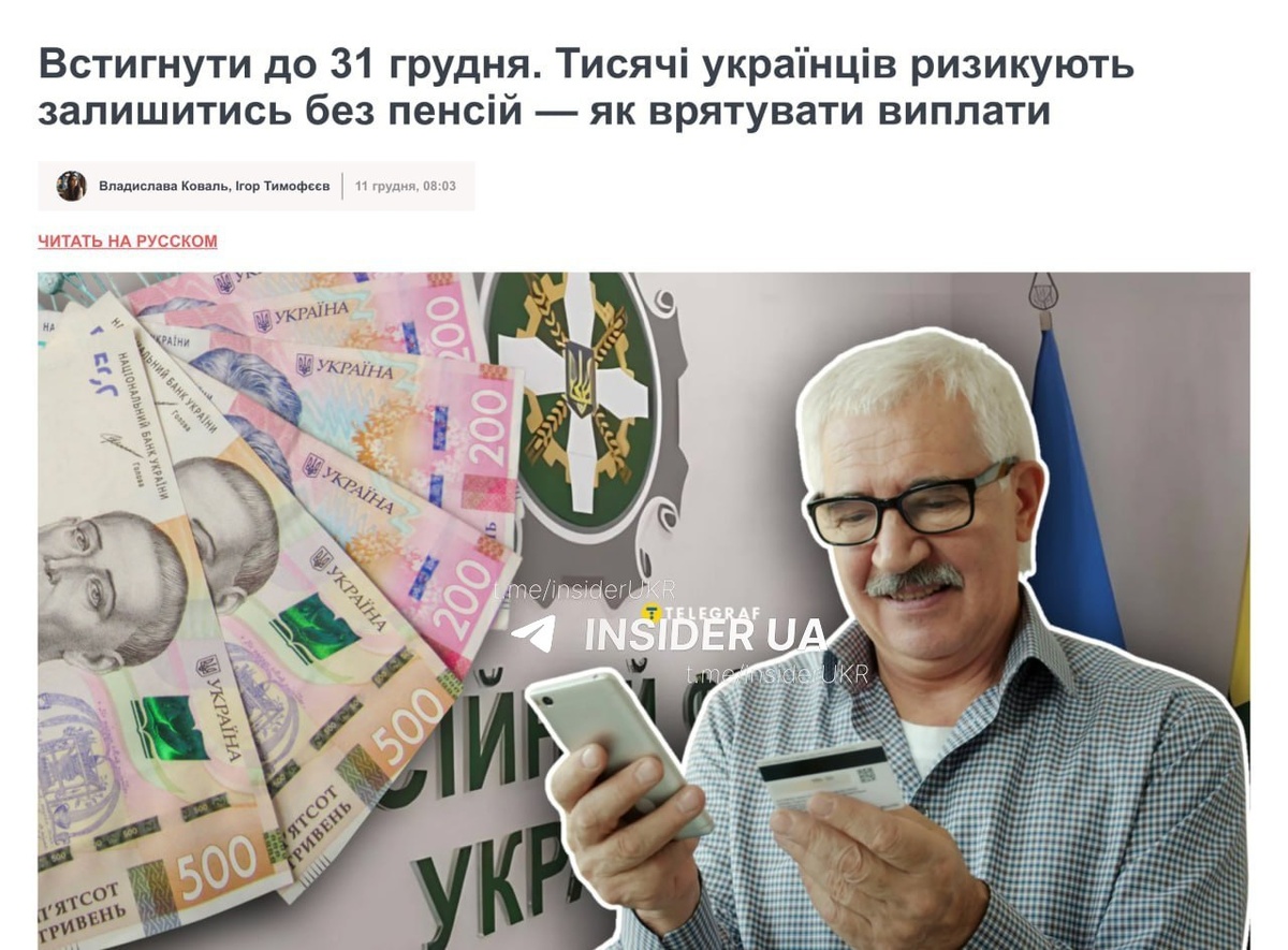 Киевский режим решил кинуть своих пенсионеров Согласно свежему заявлению пенсионного фонда Украины, до 31 декабря все пенсионеры обязаны пройти онлайн-идентификацию для получения пенсий. Это касается беженцев, ВПО, эмигрантов и жителей подконтрольных России территорий. ❌ Граждане, не прошедшие идентификацию, будут лишены своих пенсий. Так как пройти ее можно либо по видеосвязи, либо через "Дию" (а для этого минимум нужны свет и интернет), то я подозреваю, что процент украинских пенсионеров, которые смогут сделать это самостоятельно, весьма невелик. Таким нехитрым способом режим Зеленского добрался и до финансов своих стариков... @iperiodu| @iperiodu_ru x @iperiodu_ua| Подписывайтесь