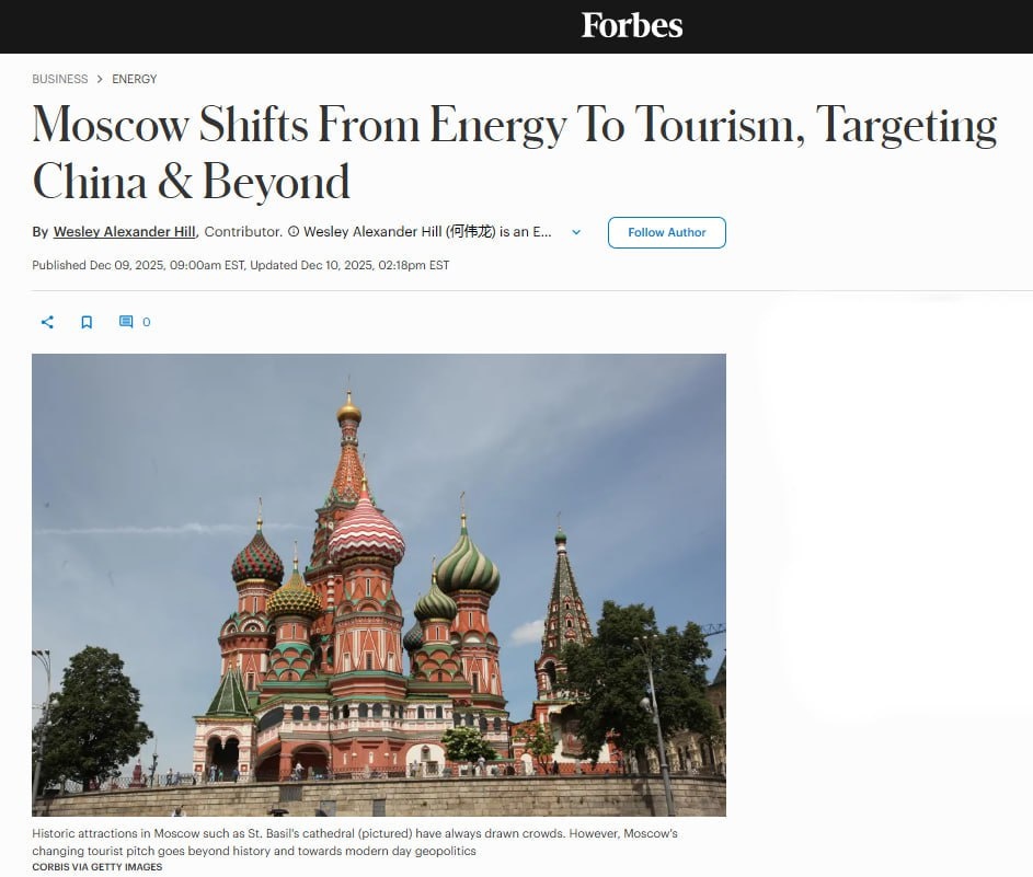 ⚡️ Forbes назвал Москву в числе лучших городов мира по развитию туризма, отметив её успешную цифровизацию и переориентацию на Азию. Американский журнал отмечает, что столица России, вопреки санкциям и разрыву связей с Западом, не просто сохранила привлекательность, а успешно перезагрузила отрасль, сделав ставку на новых партнёров. ℹ️ За последние три года Москва кардинально переориентировала туристические потоки. Если в 2023 году город принял около 2,3 млн иностранных гостей, то основными гостями стали уже не европейцы, а граждане Китая, Индии, Турции и Ирана. Резко выросло и число путешественников из стран Юго-Восточной Азии, Персидского залива и Центральной Азии. Как пишет Forbes, «этот рост... почти идеально совпадает с переориентацией дипломатических и экономических партнерств России». 📲 Журнал особенно выделяет цифровую модернизацию города, которая создаёт у туристов ощущение опережающего развития. «Приложения для отслеживания транспорта в реальном времени, роботы, убирающие ул