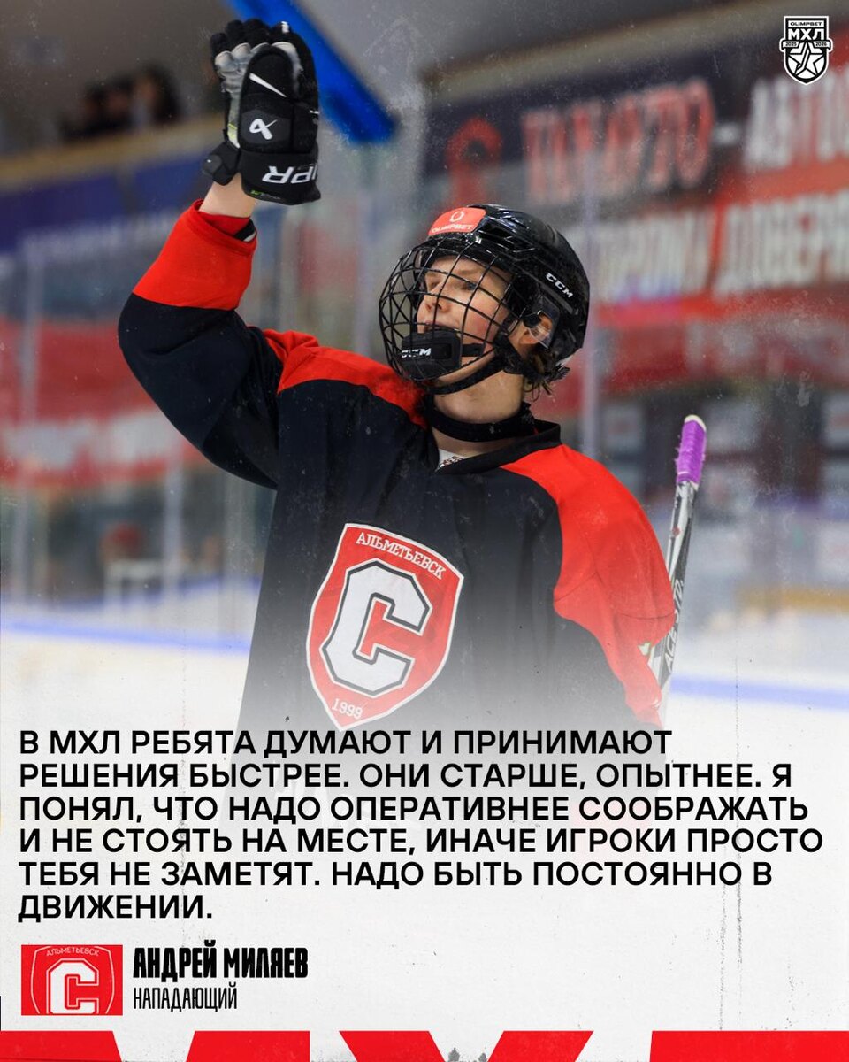 «Я мечтал стать профессиональным хоккеистом. Такая цель есть и сейчас». Андрей Миляев🛰️ в 15 лет покоряет МХЛ Юный форвард стал автором третьего самого молодого гола в истории, забросив шайбу в возрасте 15 лет, восьми месяцев и 24 дней. Нападающий возглавил рейтинг игроков 2009 года рождения в ноябре. В интервью официальному сайту МХЛ Андрей рассказал, как адаптировался в Лиге и почему хранит историческую шайбу в домашней раздевалке, а также поделился главной хоккейной целью — сыграть за сборную России. 🔗https://mhl.khl.ru/news/20080/1169664/ 🏒@mhlrus