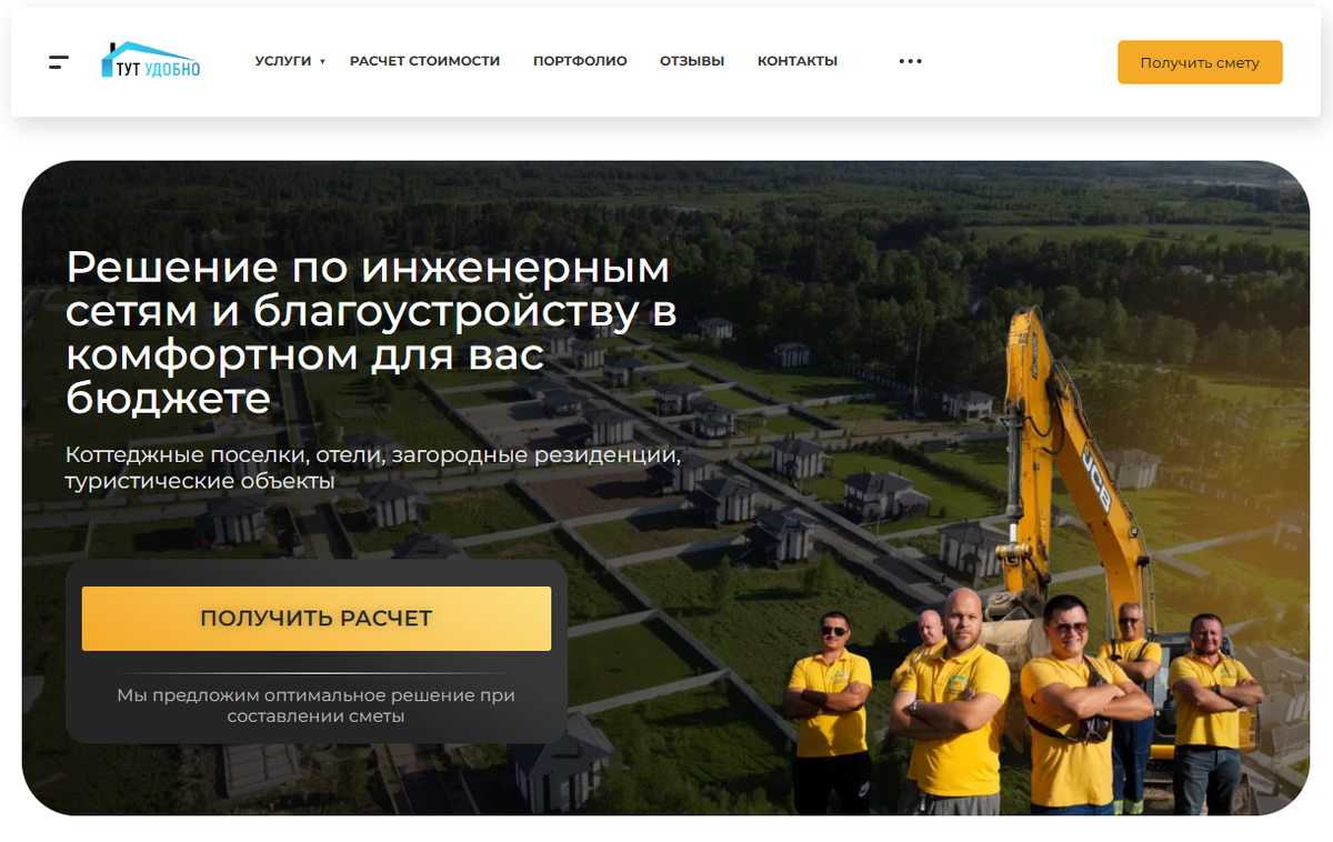 ТутУдобно — московская строительная компания с 10-летним опытом в проектировании и монтаже инженерных сетей. Специализация: комплексные решения для коттеджных поселков, отелей и туристических объектов. География работы — Москва и Московская область. Основные направления: проектирование наружных сетей, водоснабжение, канализация, благоустройство территорий.