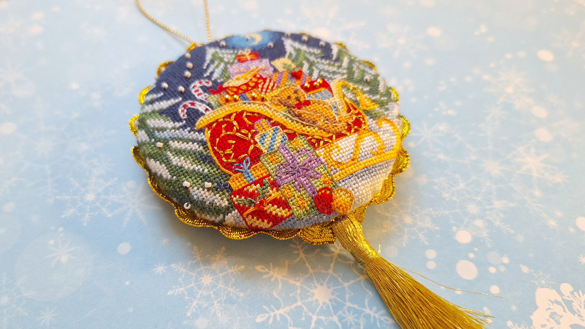 Маленькое новогоднее чудо: как я вышила игрушку «Праздничные сани» от PANNA