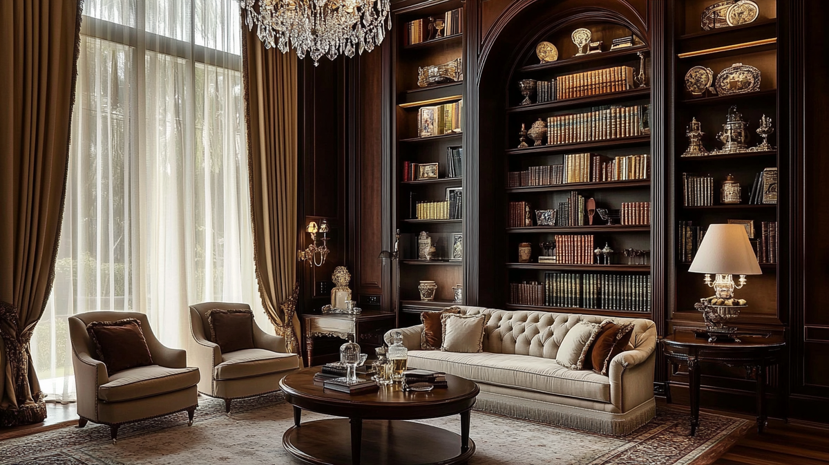 Мебель решает две задачи: комфорт и демонстрация статуса. Это не просто диван, а место для приёма гостей. Не просто стол, а центр семейной жизни. Каждый предмет — часть образа, а не просто функциональный элемент.