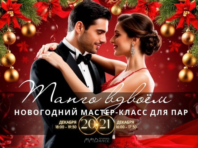 🎄 Когда ещё, если не в день танго анонсировать новогодний Танго-Мастер-класс для Влюблённых 😍 20 декабря (сб) — 18:00, 21 декабря (вс) — 16:00 Подарите друг другу вечер, наполненный магией, романтикой и движением! Вас ждёт увлекательный мастер-класс по аргентинскому танго — без разницы, танцевали вы раньше или нет! Под руководством преподавателя вы познакомитесь с базовыми элементами, выучите красивую мини-хореографию и станцуете свой первый совместный танец. Всё это в атмосфере настоящего новогоднего праздника: мерцание огней, ёлка, бокал шампанского и аромат свежих фруктов. Лучшего свидания не придумать! На память о вечере каждая пара получит небольшую профессиональную фотосессию и видеосъемку их танца. 🕰 Длительность: 1,5 часа 💰 Стоимость участия с пары: при предоплате — 4490 руб. в день мастер-класса — 4990 руб. Для учеников студии — скидка 1000 руб. Приходите, чтобы вместе зажечь искру чувств, танца и вдохновения! Выбирайте удобную дату и регистрируйтесь в ВК по ссылке