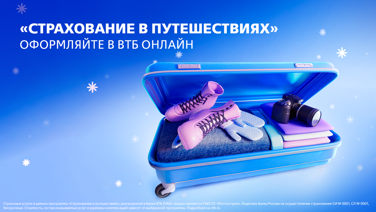 Оформите полис сейчас, и это станет первым шагом к вашему новому путешествию. Продукт доступен для клиентов ВТБ в личном кабинете.